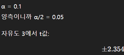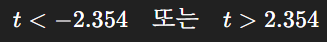 초록 실선 -> 대칭 t = 관측된 t값의 절댓값 위치