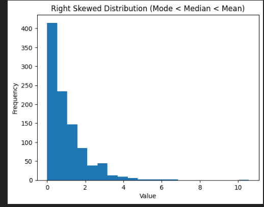 “최빈값이 도수곡선의 왼쪽이나 오른쪽에 위치할 경우 평균과 중앙값은 최빈값 위치와 다른 곳에 위치하게 된다.”